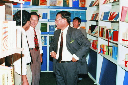 于1996年(時(shí)任化學(xué)工業(yè)部黨組副書(shū)記、副部長(zhǎng))視察化學(xué)工業(yè)出版社圖書(shū)展臺(tái)